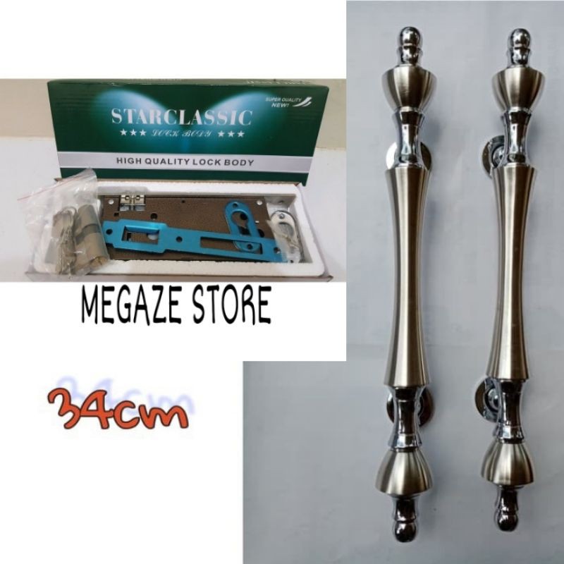 MOHON BACA DESKRIPSI DULU SEBELUM ORDERHARGA TERTERA DAPAT :2 PCS HANDEL PINTU DAHLIA1 SET BODY KUNCIBAHAN KUNINGANPANJANG 34 CMWARNA PUTIH/CROMSILAHKAN DIORDERBY MEGAZE