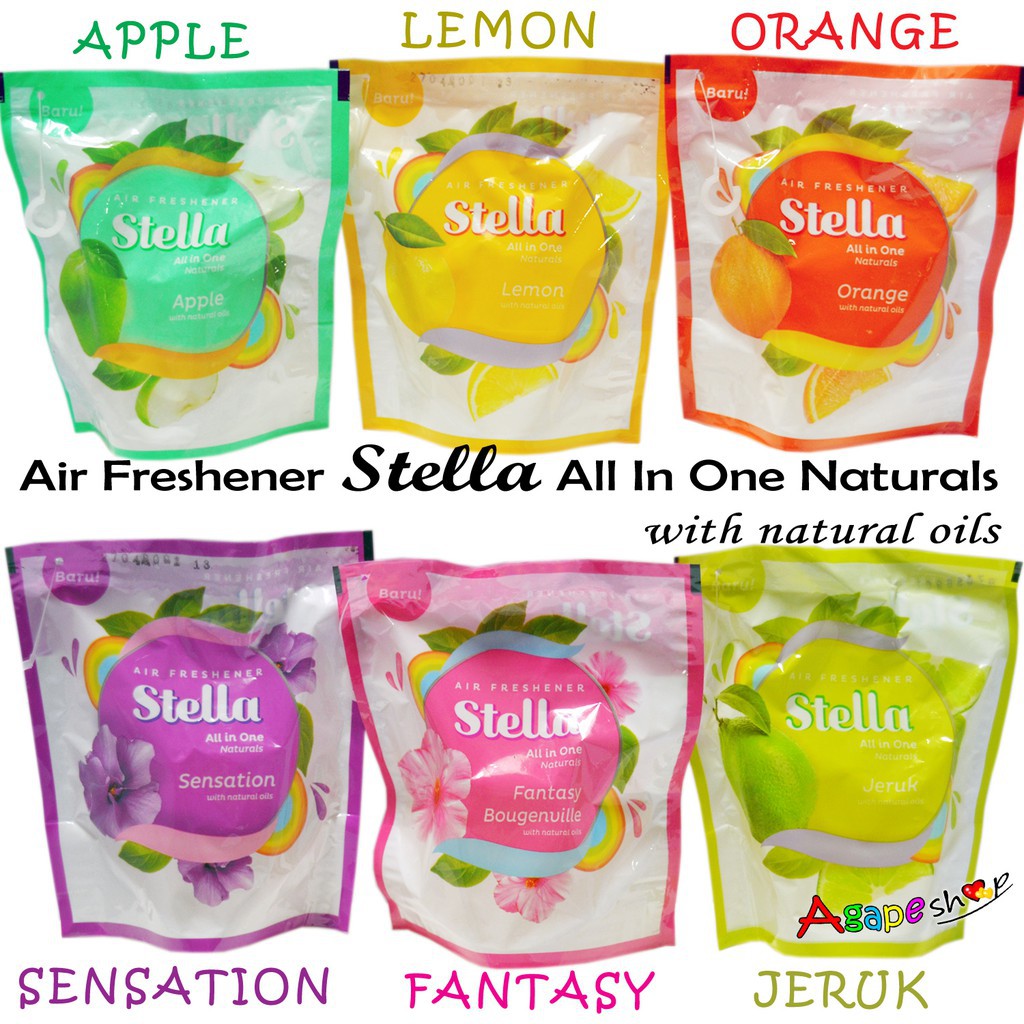 Stella All In One - With Naturals Oil adalah Pengharum Ruangan Wangi Mewah yang Memberikan Suasana Menyegarkan. Di Gantung pada Kipas angin atau AC (Air Conditioner) Ruangan Anda atau Kisi kisi Lubang AC Mobil anda.Gunting pada ujung Kemasan, lalu gantung / letakkan di tempat yang mempunyai sirkulasi udara Ada 6 Variant Harum Stella All in One With Natural Oil :1. Orange - ORANGE TWIST Natural Oil2. Fantasy - FANTASY BOUGENVILLE Natural Oil3. Sensation - TROPIC SENSATION Natural Oil4. Jeruk - LIME CARNIVAL Natural Oil5. Apple - APPLE FIESTA Natural Oil6. Lemon - LEMON FRESH Natural OilStella All in One, 42 gr Air Freshener di Segala Ruangan Mohon tambahkan buble wrap untuk produk ini ya kak, hanya dengan IDR 1.500 paket kaka di buble berlapis lapis.No Complain bila tidak menambahkan buble ya. Selamat Berbelanja :)#stella #pengharumru
