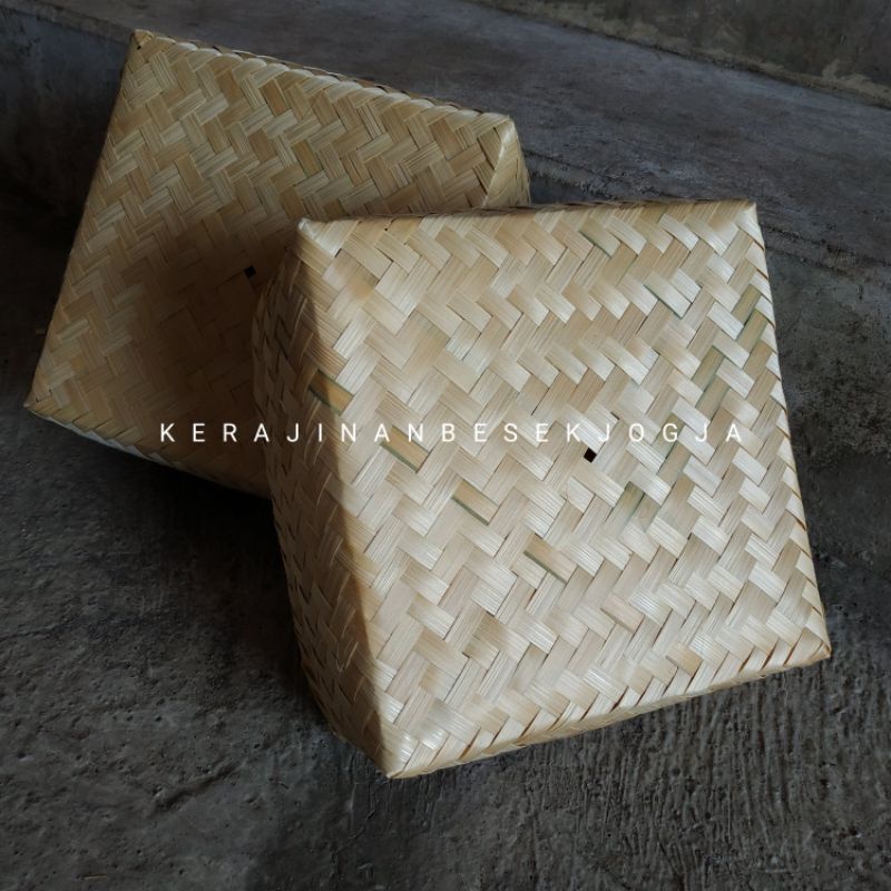 Berwarna asli dari bambu tersebut, tanpa melalui proses pewarnaan. Berukuran panjang 25 cm lebar 25 cm dan tinggi 8 cm dengan berat per @ 200 g. Terbuat dari bambu yang berkualitas karena sudah dikeringkan dan dibersihkan serabutnya. Mudah digunakan dan awet dengan perawatan. Bisa didapatkan dengan harga grosir meskipun beli bijian. Barang ini selalu ready dengan stok ribuan, jadi jangan takut kehabisan. Manfaat :•Sebagai wadah untuk hantaran acara selamatan •Contoh tempat makanan : Satu buah ingkung, telur kurang lebih 2 kg, tempat lemper, dllBuat hantaran : Nasi, 4 macam sayur, kerupuk dan ayam separoGenduri: Beras 1 kg, gula ¼, teh 1, tempe 1, nasi uduk, mie instan 2, telur 1 Makanan : Nasi, sayur 3 macam , ayam, buah , kerupukCatatan :•Pembelian dalam kapasitas banyak disarankan untuk menggunakan cargo karena biaya pengiriman lebih murah dengan minimal pembelian 100 biji. •Harga yang tertera berlaku untuk pembelian per pasang ( atas-bawah ) bukan per biji.•Barang dikirim setelah dana ditransfer, apabila sudah melakukan pemesanan tetapi belum melakukan transfer maka transaksi tidak akan kami pros