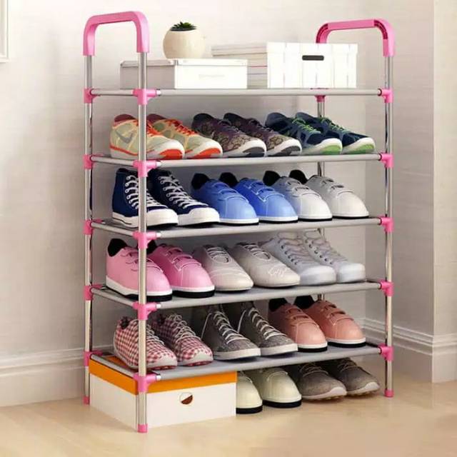 Kelebihan Rak Sepatu Portable Serbaguna 5 Susun :Ringan & PortabelMudah Dibongkar PasangBahan Logam Pipa yang kuat & Plastik Parts dan KonektorMudah dilipat dan dis