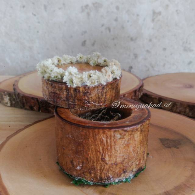 Termurah Perlengkapan di Kota Surakarta Promo Edelweis Tempat Cincin Ring Box Rustic Wood Slices dari menujuakad.id Kab. Tangerang