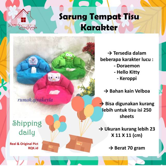 Name: Sarung Tempat Tisu Karakter Hello Kitty Doraemon Keropi - Cover Tempat Tissue - Sarung Kotak Tisu