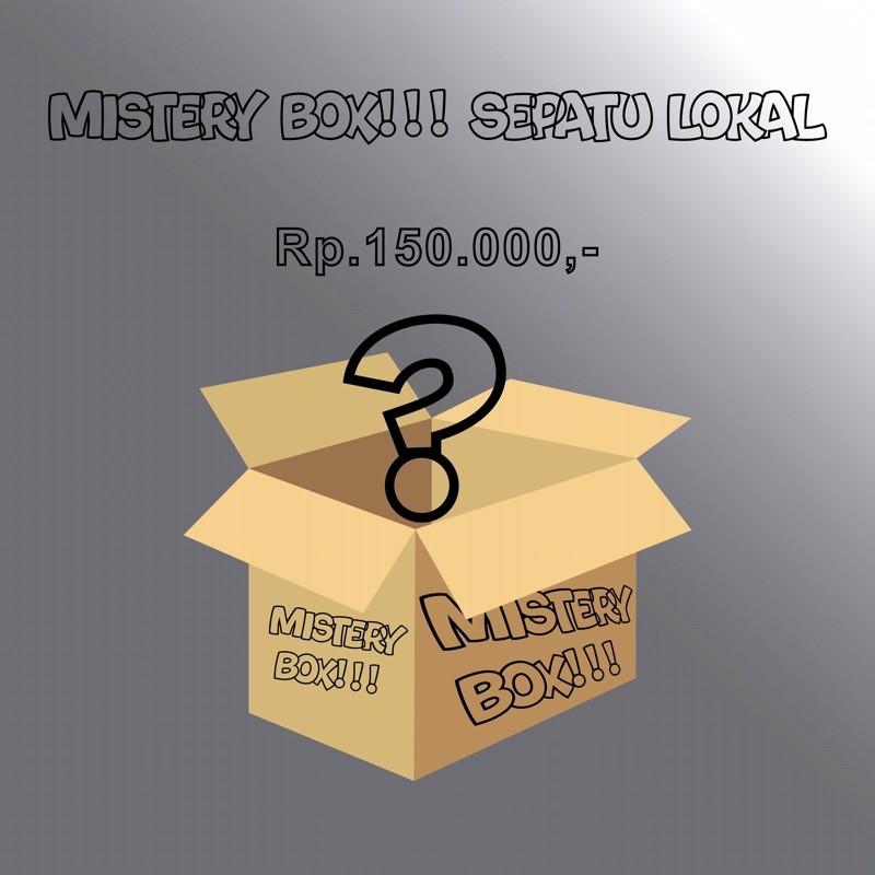 Mistery box sepatu lokal!isi dalam box : Ventela,Viergo,Warrior,Nobrands footwear,Compass DllKami akan mengirim Sepatu lokal Secara Random,kalian Pilih size.Hadiah Utama Ada Sepatu Compass Gazelle Kami sangat menjamin barang yang kami kirim adalah 100% Baru , Isi dalam box sepatu seharga 140.000 sampai dengan 500.000