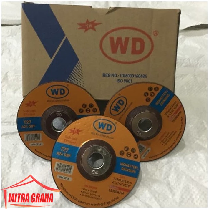 Selamat datang di Mitra Graha JakartaBarang sesuai dengan gambar dan kualitas produk bagus.Batu gurinda poles WD 4" digunakan untuk memoles atau mengasah besi, baja danstainless steel Spesifikasi : T27A24 QBFUkuran : 100 x 6 x 16 mm4" x 1/4" x 5/8Harga diatas adalah harga per 1 pcs dan 1 pak isi 25 pcssilakan di order, terimakasih...SKU : 3131/11222963430114426
