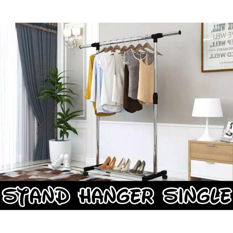TANYAKAN STOK TERLEBIH DAHULU ORDER.. JANGAN TERGIUR HARGA MURAH.. DAPATKAN BARANG BERKUALITAS HANYA DI TOKO KAMI.. 100% UANG KEMBALI KALAU PRODUK TIDAK ORITAMBAHAN PACKING DUS + BUBBLE WRAP Extra Packing Lebih Aman BUBBLE WRAP / DUS TEBAL UNTUK PENGIRIMAN Stand Hanger Single Rak Serbaguna Dengan 4 Roda / Stand Hanger Single PoleStand hanger Single Rak serbaguna dgn 4 rodaModel standing, bisa untuk gantungan pakaian, tas, jas, topi, dasi dan aksesoris atau apa aja yang bisa digantung. Model standing lebih modern dan irit tempat, bisa dipakai di rumah atau di kantor.Dari bahan stainless steel bisa dipakai untuk jangka waktu lama, kuat dan kokoh. Pemasangan sangat mudah.Disertai Roda, jadi mudah untuk memindahkan dari satu tempat ke tempat lainTidak termasuk hanger bajuSpesifikasiSize :tinggi : 80 - 155cmlebar : 80 -155cmbahan: stainless steel + plastik ⚠️⚠️⚠️ NOTE UNTUK CUSTOMER ⚠️⚠️⚠️HARAP DI PERHATIKAN...!!!❤️❤❤ Sebelum membuat penilain jelek harap chat ke admin terdahulu utk solusi terbaiknya ya kak ❤️❤❤❤️❤❤ karna kepuasaan customer adalah prioritas kami ❤️❤❤❤️❤❤ komplain barang kurang / refund harus disertai bukti unboxing ❤️❤❤MOHON UNTUK DIPASTIKAN SAAT ORDER YAITU ALAMAT LENGKAP SEBAGAI CONTOH : (ALWAYS ADA KELURAHAN/DESA, RT/RW, KECAMATAN, KABUPATEN SERTA KODE POS) DAN NO HAPE YG TERCANTUM ADALAH AKTIF (DPT DIHUBUNGI) AGAR MEMUDAHKAN KURIR SAAT MENGANTAR BARANG.*SEBELUM DI KIRIM BARANG DI PASTIKAN 100% OK / TIDAK RUSAK/PECAH DLL..*Sebaiknya tambahkan ''PACKING EKSTRA AMAN'' dalam daftar belanja anda atau ADD :*Kami tidak bertanggung jawab terhadap barang/kiriman jika terjadi kerusakan dlm proses pengiriman..*Tidak terima komplain brg rusak/pecah belah/human eror dll sebaiknya asuransikan dlm pengiriman ny..*Motif produk/bentuk/packing tidak selalu sama dgn pict promo...semua akan disesuaikn dgn kebutuhan produksi/pasar..harap dipahami..!!!ORDER = SETU