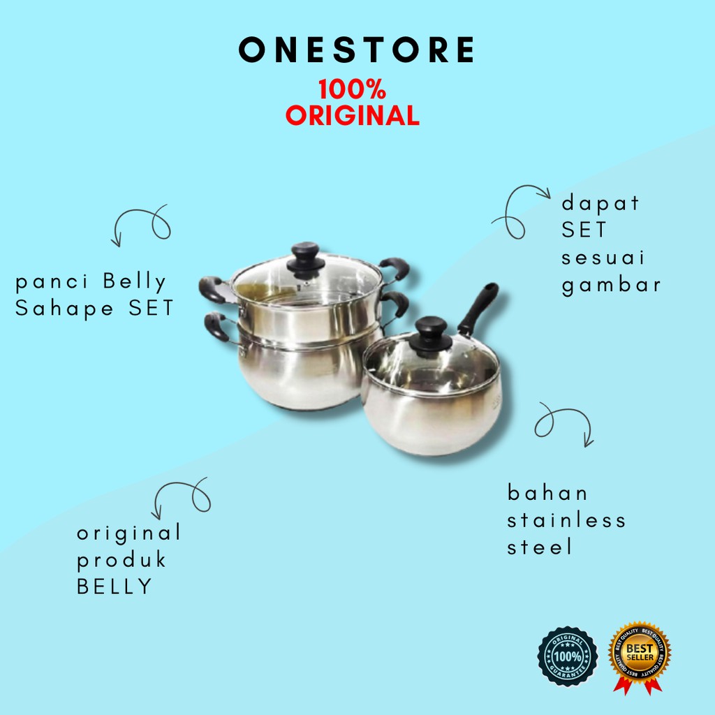 SELAMAT DATANG DITOKO ONE STOREHari kerja Senin - Sabtu Jam 08.00-16.00Minggu / libur nasional toko tutup yaaORDER SEBELUM JAM 16.00 DIKIRIM HARI YANG SAMAMEMBELI=SETUJUSelamat Berbelanja di toko kami kakABOUT:* Produk Original dan Berkualitas.* Produk Branded Dengan Harga Kompetitif.* Belanja Mudah, Aman dan Terpercaya.Foto atau gambar produk sama sekali tidak direkayasa.Perbedaan antara foto dengan aslinya, maksimal 5% sampai 10% karena faktor pencahayaan.========================Deskripsi Produk :Selamat datangSemua produk di etalase kamiAdalah ready stock dan siap dikirimTerima kasih..Bisa untuk kompor:1. Gas2. Elektrik3. Induksi4. Ceramic5. HalogenTerbuat dari stainless steel TEBAL ( Berat produk dan tutup 2,5 Kg )yang mana jenis stainless steel bertaraf internasional yang memiliki ketahanan prima terhadap karat dan merupakan material dengan durabilitas tertinggi.DiameterPanci 22 cmKetinggian panci 11 CmKukusan 22 CmKetinggian kukusan 8 CmSauce pan 18 CmKetinggian sauce pan 11 cmDan 2 tutup kaca Tempered GlassTutup panci terbuat dari kaca tempered glass yang kuat dan jika pecah tidak akan berantakan tersebar berkeping-kepingBagian bawah panci menggunakan 2-ply base technology yang terdiri dari:1. Premium Stainless Steel2. Stainless Steel lapisanUntuk mempercepat proses pemanasan ( hot air trapped )Produk yang sangat mumpuni dan handal untuk bunda yg hobi meracik makanan atauKuliner penjual b