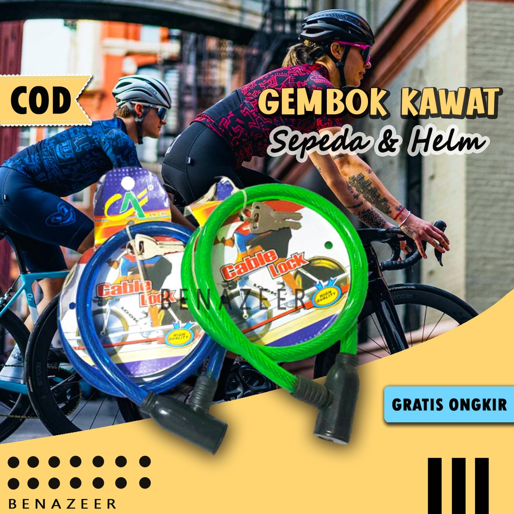 Produsen Perlengkapan di Kota Tangerang Selatan Gembok Sepeda - Gembok Kawat Baja Kunci Serbaguna - Gembok Helm 65cm dari Benazeer.id Kota Jakarta Utara